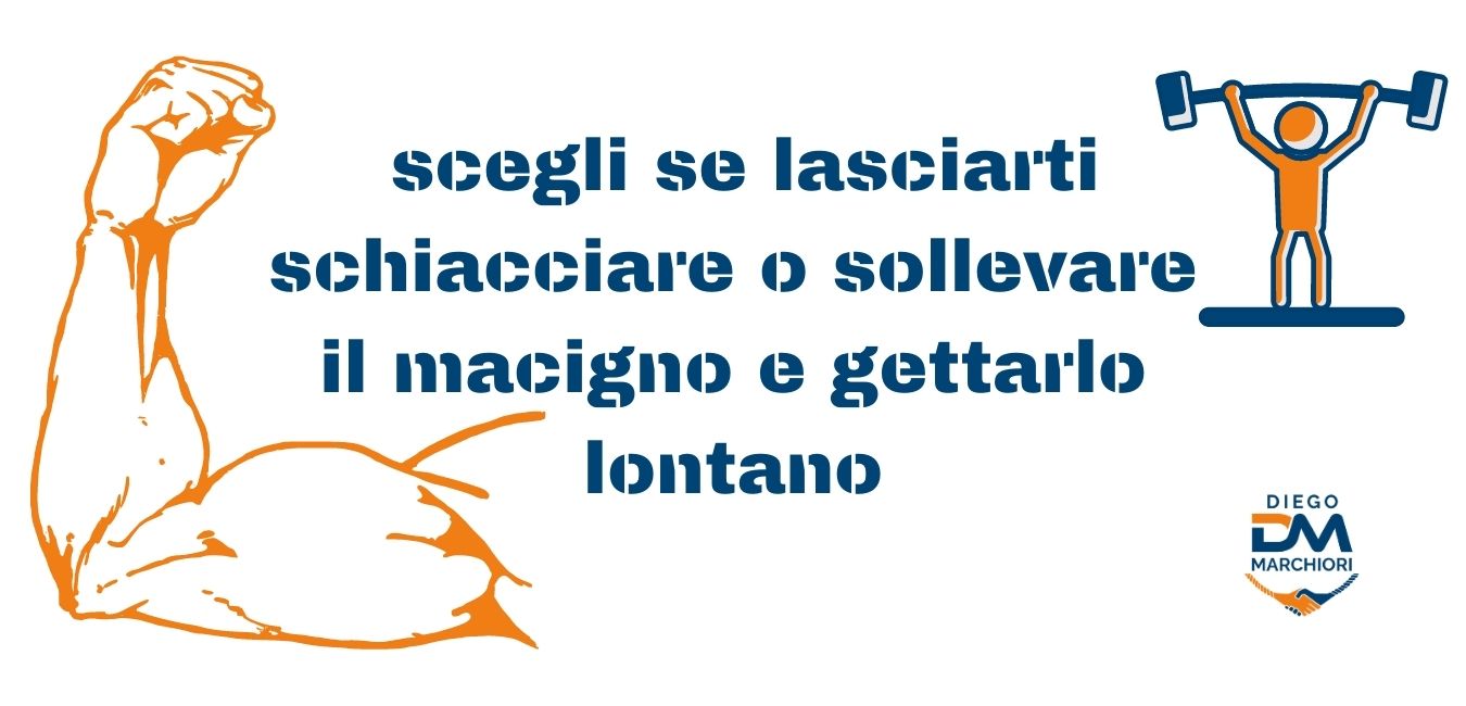 è stato davvero fondamentale in quella fase così delicata pescare dallo stato d’animo emozioni buone, di rilancio, che ridessero una spinta positiva. Ciò mi ha permesso di dire: “ok, questa è la situazione e non puoi farci niente. Non si torna indietro quindi ora scegli se lasciarti schiacciare o sollevare il macigno e gettarlo lontano“. Il macigno che mi stava schiacciando l’ho fatto a pezzi, e poi lo gettato un po’ alla volta.